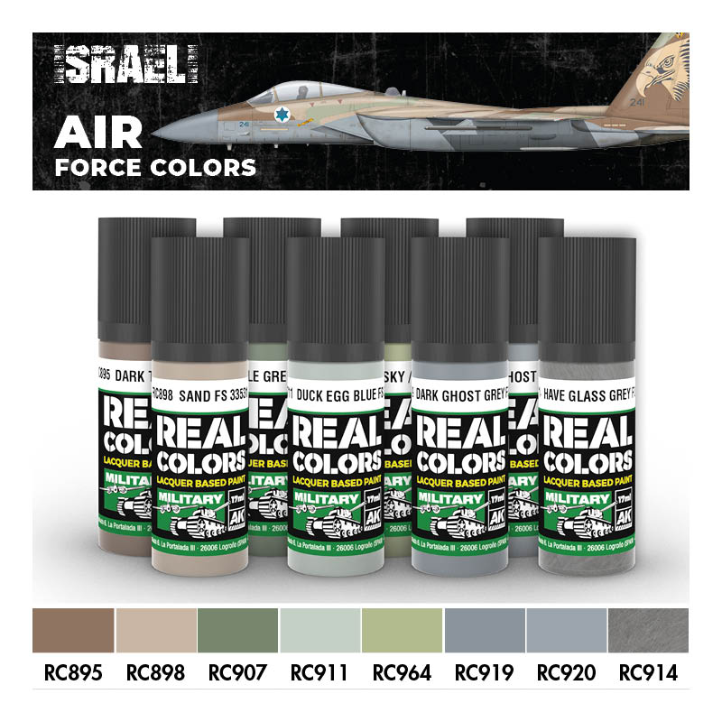 selection of essential colors for painting models of most of the aircraft used by the israeli air force from the late 1960s, onwards.