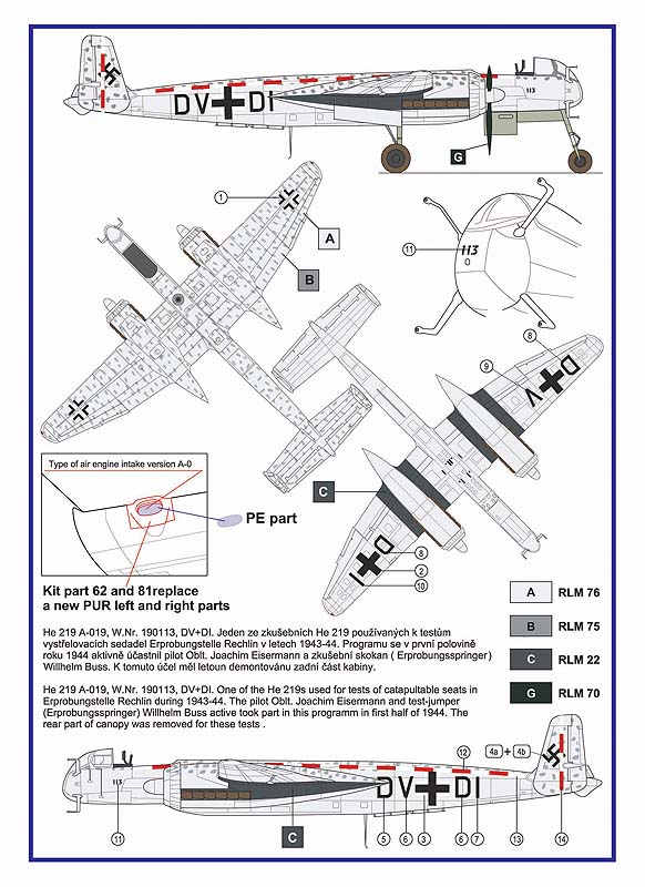 1/32 Heinkel He-219A-0 or He-219A-2-The conversion set & decals