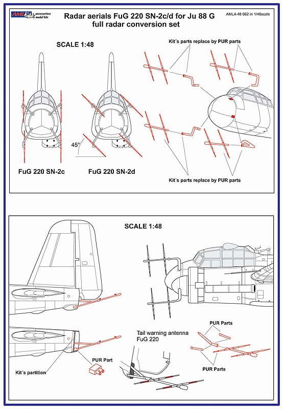 AML - 1/48 FuG 220 SN-2c/d Radar aerials for the Junkers Ju-88G-6 (for Dragon kits)