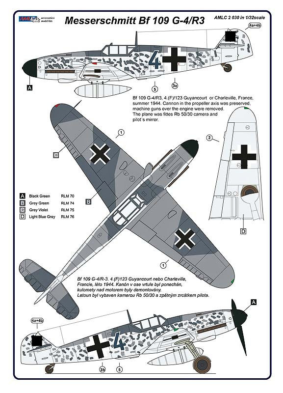 AML - 1/32 Decals Messerschmitt Bf 109 G-4/R3 Aufklrer