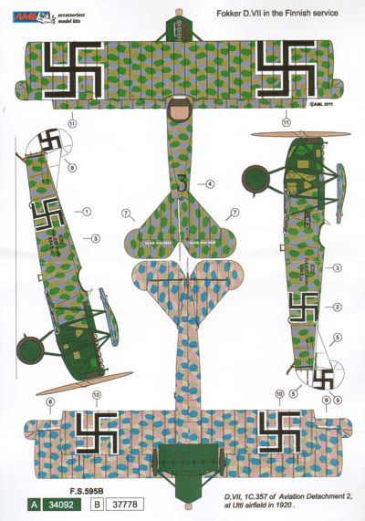 AML - 1/48 Fokker D.VII in the Finnish Service. Includes decals for 2 aircraft. National Insignia and Canopy paint masks