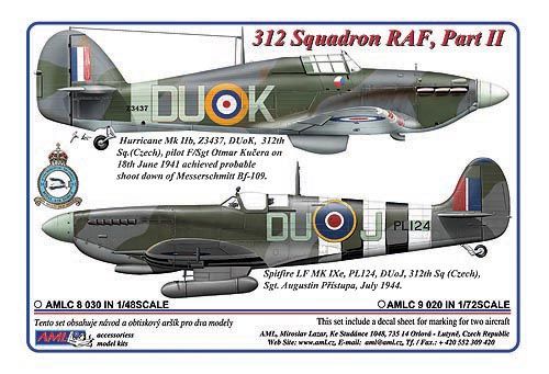AML - 1/72 312 th Squadron RAF, Part II / 2 decal version: Hawker Hurricane Mk.IIb, Z3437, DuoK + Supermarine Spitfire LF Mk.IXe, PL124, DuoJ