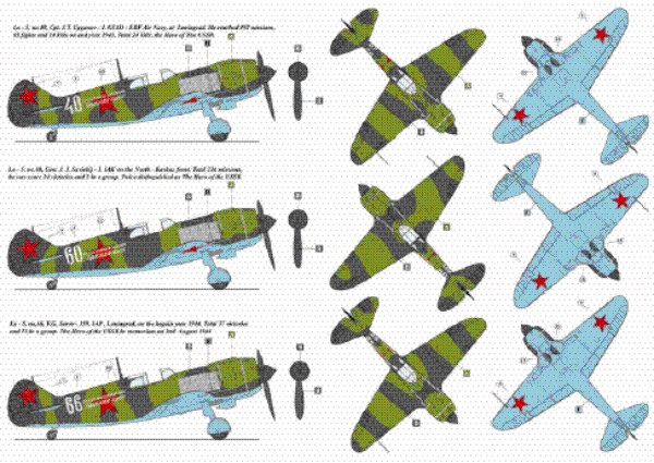 AML - 1/72 Lavochkin La-5 Soviet Aces 4 Silver 3 Capt K.A.Novikov, Silver 40 Capt J.Y.Cyganov, Silver 60 Gen J.J.Savickij, Silver 66 K.G.Serov