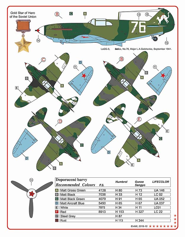 AML - 1/72 Lavochkin LaGG-3 Part 1. (3) Flown by Capt Mironov No 78 609th IAP; Capt Galchenko No 76 145th Iap with black or white cats on fin; 21st Iap No 04