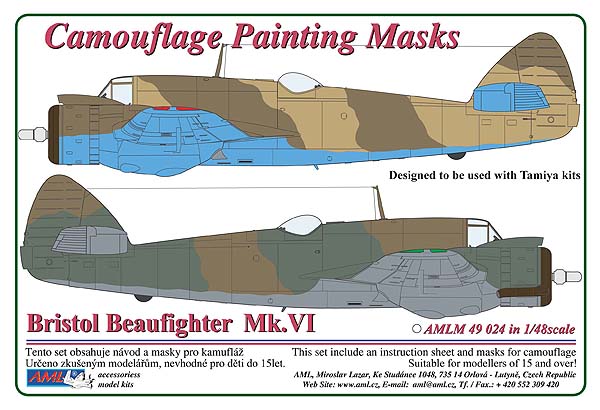 AML - 1/48 Bristol Beaufighter Mk.VI - 2 Variant Camouflage pattern paint mask (designed to be used with Tamiya kits