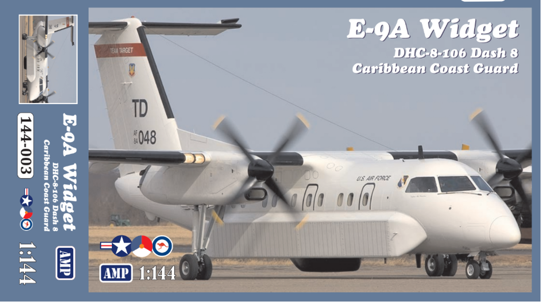 AMP - 1/144 E-9A Widget DHC-8-106 Dash 8 with decals for Australian Customs 2003, Netherland Antilles 2017, USAF, Nellis AFB, 2005.