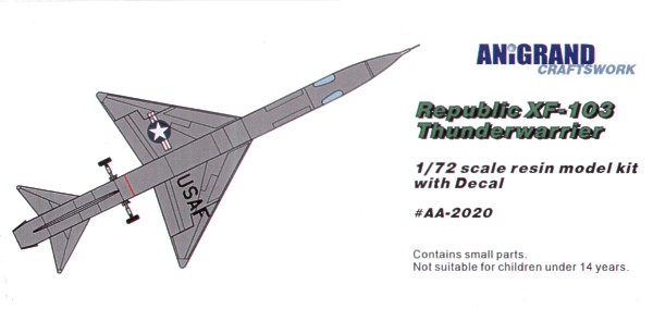 Anigrand Craftswork - 1/72 Republic XF-103. In 1949, U.S. Air Force introduced the new 'weapons system' concept, in which consisting of the air-to-air guided missiles, fire control system and the '1954 interceptor' capable of supersonic flight. The project was designed to intercept the new Soviet intercontinental bombers. In 1951, Air Force announced that the Convair's YF-102Aand the Republic's XF-103 were selected for the airframe part of the project. A mockup was inspected in 1953. Republic received a contact for 3 prototypes. It was adopted a dual-cycle propulsion system, a turbojet and a ramjet were installed tandem in the aft fuselage. Normal cruise were powered by turbojet. At high speed, the thrust of the turbojet was to be augmented by a ramjet. Due to a lot of development problems, difficulties of titanium fabrication structure, engines delay and cost overruns, Air Force deemed that the XF-103 was no longer a possible operational '1954 interceptor'. The program was finally cancelled in 1957.