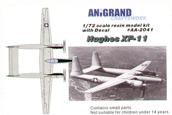 Anigrand Craftswork - 1/72 Hughes XF-11. In 1939, Hughes Aircraft used a special wooden structure which strength comparable to steel for a proposal of bomber design, the model D-2. The project interested Usaaf because metal material was becoming a scare by the war. In 1942, the D-2 was ordered under an attack aircraft designation XA-37. Later it was considered as a night fighter XP-73. In 1943, the wooden D-2 prototype was lost by fire accident in Hughes facility before it was inspected by USAAF. Based on its high speed and light weight records, Usaaf purchased another metal structure version as a reconnaissance aircraft, the XF-11. Due to the engines delay, Hughes could not complete the aircraft even the war was over. Usaaf decided to cancel the project but still paid for two prototypes. In 1946, with Howard Hughes himself at the control, the first XF-11 made its first flight but destroyed by crash, once again Usaaf had not inspected. The second XF-11 was modified and completed in 1947, and it was flight tested during 1948. Afterward Hughes created aerospace and helicopter divisions, and never built other airplane.