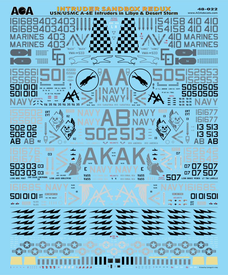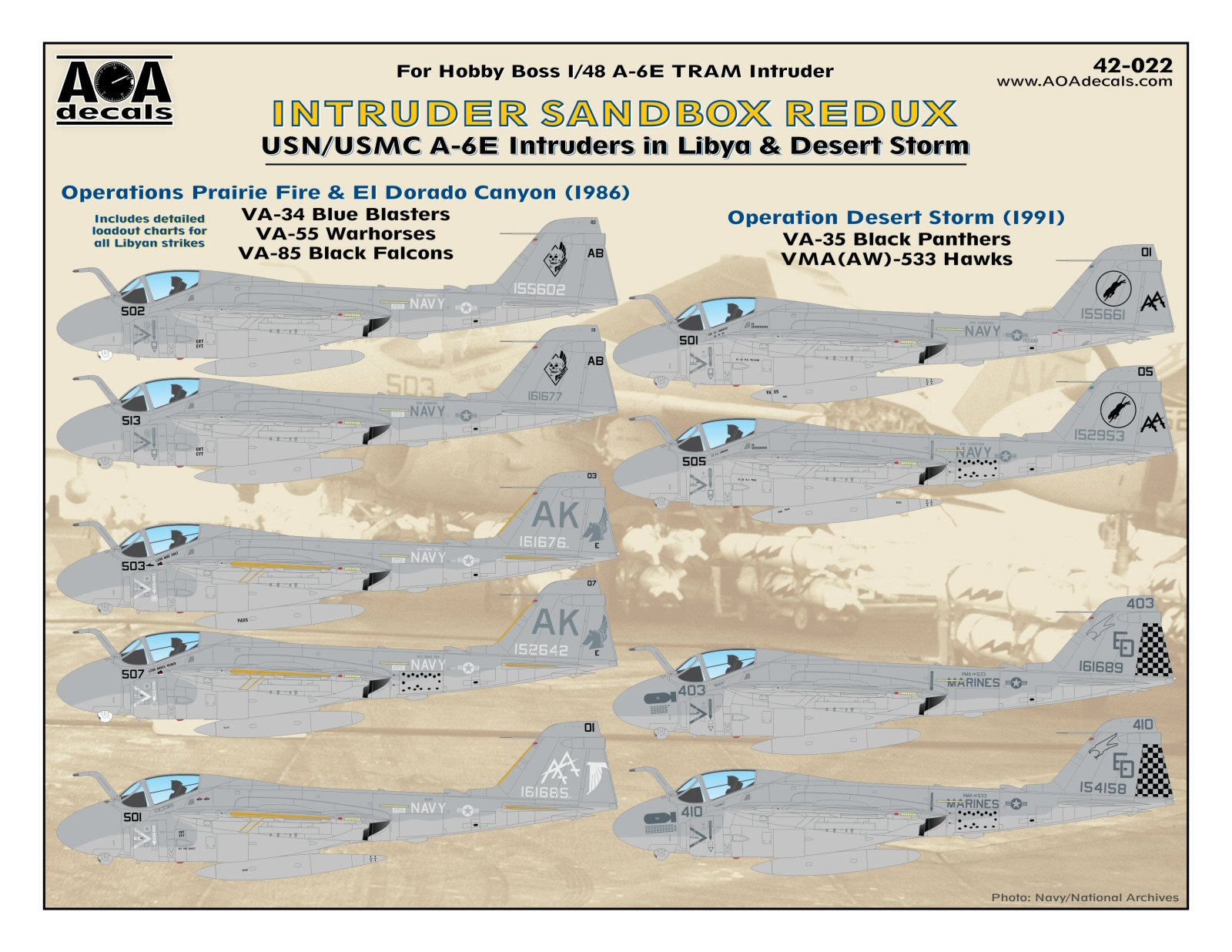 AOA Decals - 1/48 Grumman Intruder Sandbox Redux USN/USMC A-6E Intruders in Libya & Desert Storm