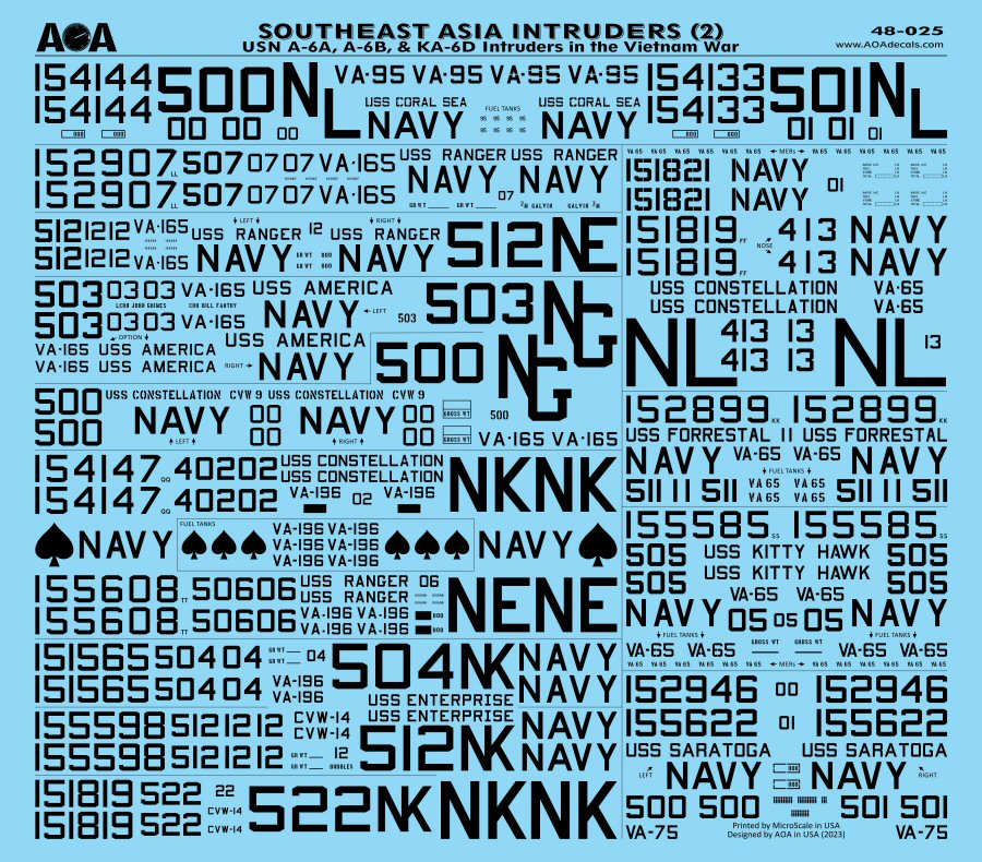 AOA Decals - 1/48 Southeast Asia Grumman Intruders 2 Usn A-6A, A-6B, & KA-6D Intruders in the Vietnam War.