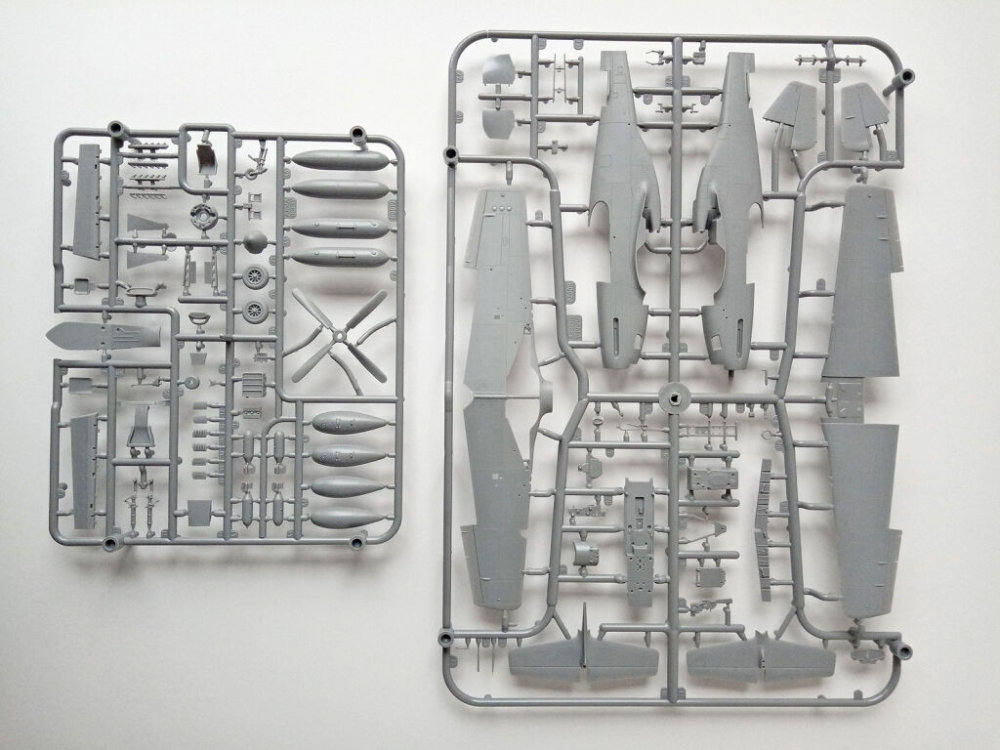 North-American P-51B Mustang... China/Burma/India, plastic kit 1/72 scale. Kit includes: Aeroplane plastic parts (2 grey sprues, 1 clear sprue) Plastic parts-additional armament (1 grey sprue) Canopy and wheels painting mask Decals with 3 marking options Marking options: P-51 B-15-NA Mustang, pilot: Cpt. B.H. "Butch" Ashmore, 26th Fighter Squadron, 51st Fighter Group, Kunming, China 1944 P-51 B-10-NA Mustang, 529th Fighter Squadron, 311th Fighter Group, pilot: Lt. Wilbert McEvoy, Burma, summer 1944 P-51 B-7-NA Mustang, "JEANNE III" Cpt. Burton N. Rodier, 26th Fighter Squadron, 51st Fighter Group, China 1944 Known for their fights over Europe in the Allied air forces, the Mustangs were first and foremost purebred fighters that successfully escorted the 'Flying Fortresses' raids against the Reich and brought the German Luftwaffe to its ultimate doom. No less important and interesting, however, were the battles against the Japanese in which Mustangs took part in areas including China and Burma. In the so-called CBI Theatre (China-Burma-India), the way aviation was used was very different from Europe. Instead of large strategic air strikes, tactical operations consisting of supporting ground troops, defending them from enemy aviation, attacking ground targets and reconnaissance predominated. In such a role, too, the fast and powerful Mustang proved itself admirably, thanks to its high payload, becoming an effective assault and even dive bomber, armed with a variety of bombs and rockets, able to operate safely without an escort! Designed in the USA to British order, the North American P-51 Mustang aircraft was initially produced with the USA-made Allison engine, tuned for low altitude. Already this version was a success and went into service not only with the RAF, but also with the US Air Force. These aircraft performed best as reconnaissance and attack planes, at high altitudes they lacked power. The problem was solved by the use of the legendary British Rolls-Royce Merlin engine, which, manufactured under licence by Packard, made the Mustang the best fighter of World War II. Mass production of the new version of the Mustang was carried out at North American plants in California under the designation P-51B-NA and in Texas as P-51C-NT. A total of 3738 B and C version aircraft were built. Some 900 of these, under the designation Mustang Mk III, were transferred to the RAF and to the Polish Air Force, RAAF, RCAF and Free French. Introduced into service in late 1943, they were gradually replaced by aircraft of the new P-51D/K version from mid-1944.