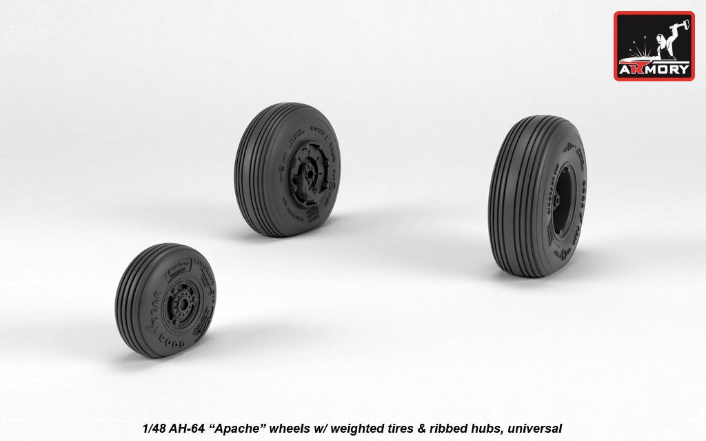 Armory - 1/48 Boeing AH-64 Apache wheels with weighted tires, spoked hubs, universal (for Hasegawa kits)