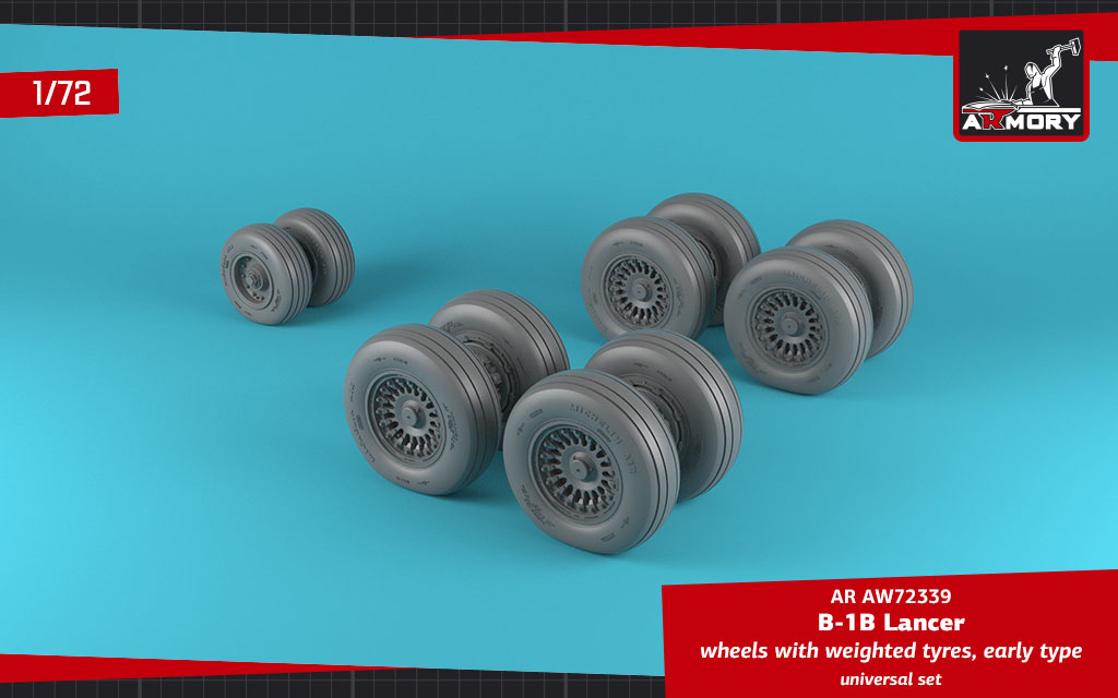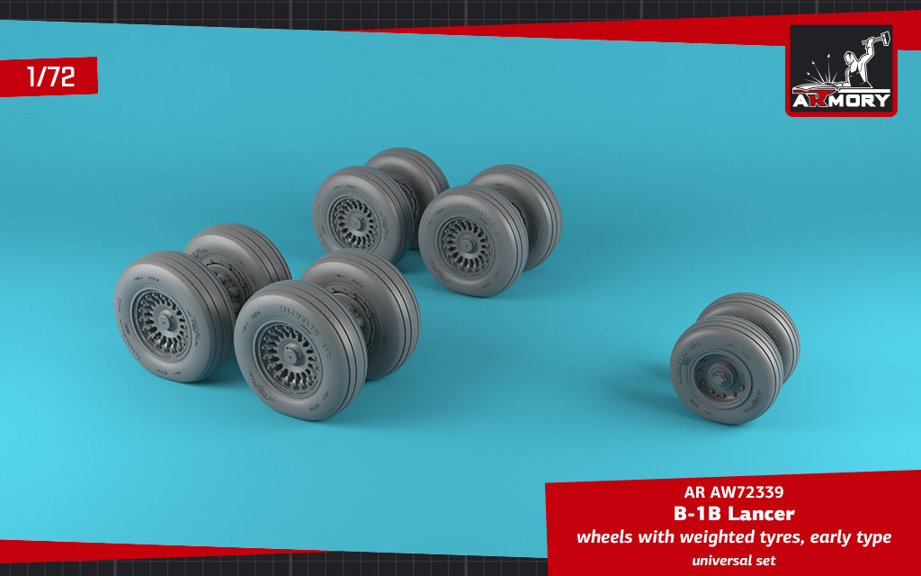 Armory - 1/72 Rockwell B-1B Lancer wheels with weighted tires, early version Airfix, Hasegawa, ModelCollect, Revell/Monogram / universal