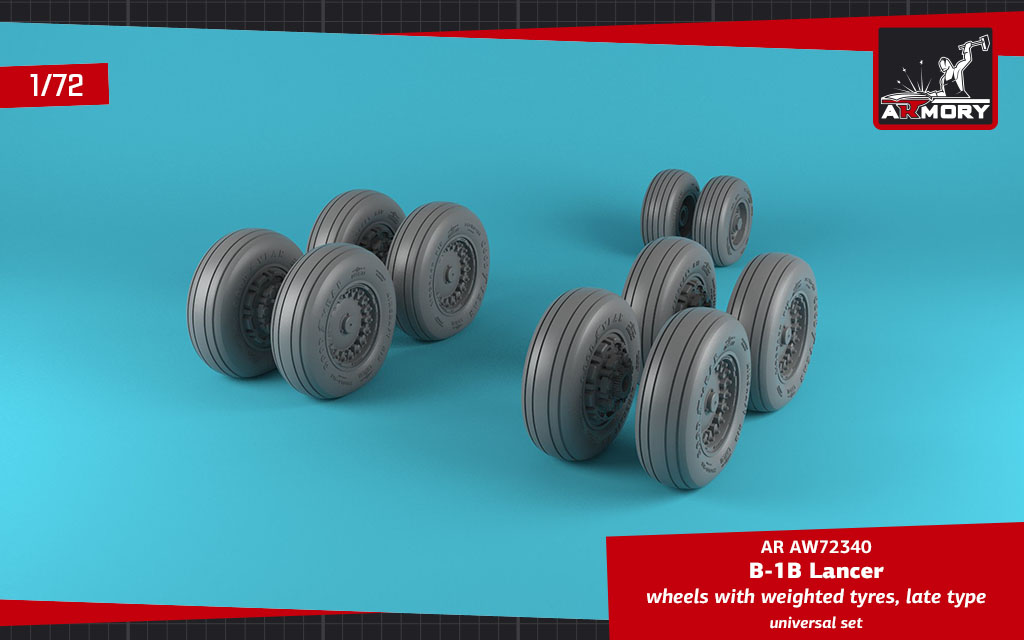Armory - 1/72 Rockwell B-1B Lancer wheels with weighted tires, late version Airfix, Hasegawa, ModelCollect, Revell/Monogram / universal