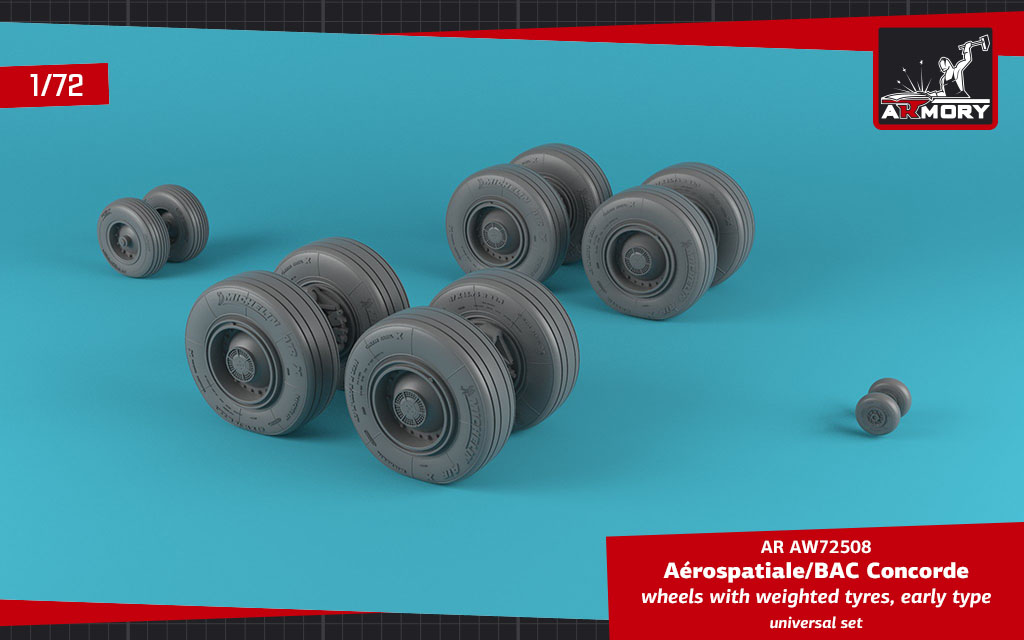 Armory - 1/72 Aerospatiale Concorde wheels with weighted tyres, early version (for Airfix, Heller and Revell kits)