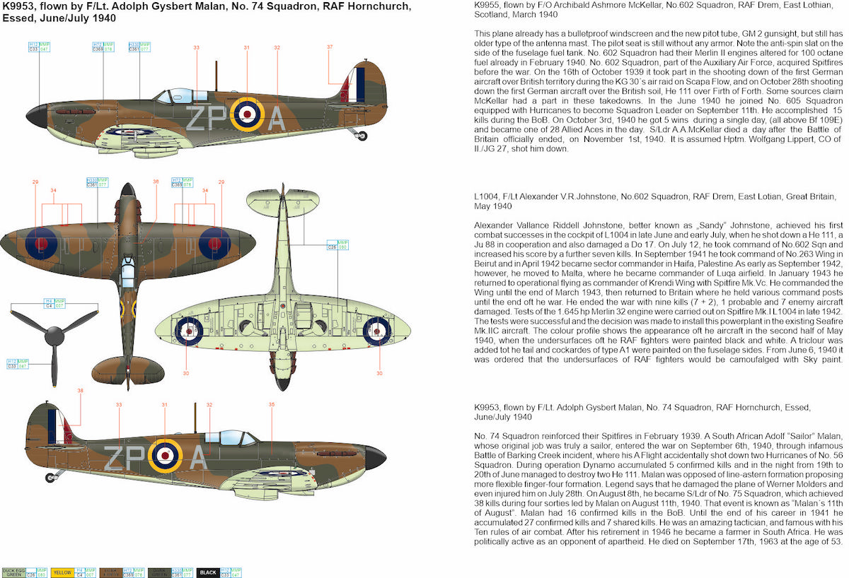 - K9953, flown by F/Lt. Adolph Gysbert Malan, No. 74 Squadron, Raf Hornchurch, Essed, June/July 1940