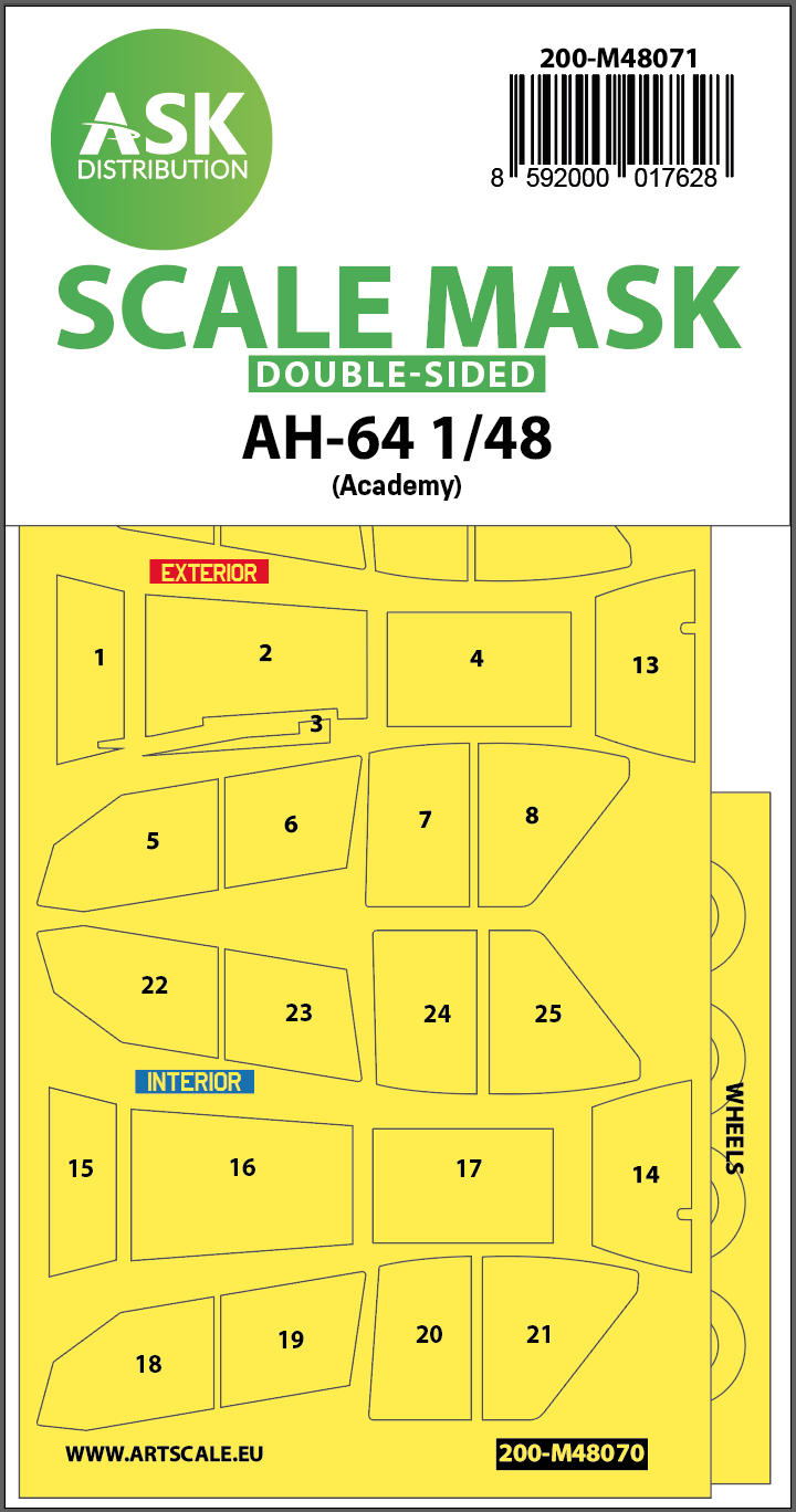 Art Scale - 1/48 Boeing/Hughes AH-64D Apache wheels and canopy frame paint masks (inside and outside) (for Academy kits)