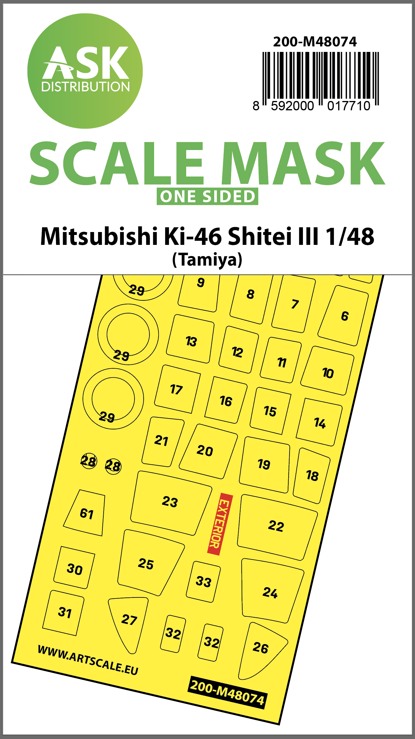 Art Scale - 1/48 Mitsubishi Ki-46 Shitei III wheels and canopy frame paint masks outside only (for Tamiya kits)