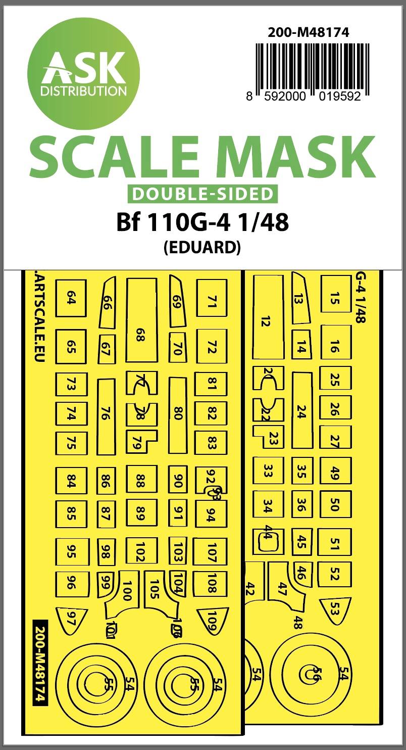 Art Scale - 1/48 Messerschmitt Bf-110G-4 double-sided express fit masks for clear parts and masks for the wheels for Eduard kits