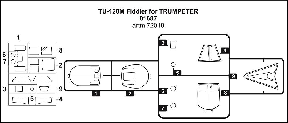 Artillery - 1/72 Tupolev Tu-128M Fiddler canopy mask (for Trumpeter TU01687 kits)