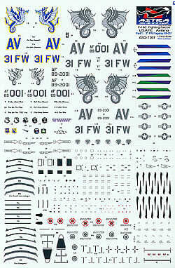 Astra Decals - 1/72 Lockheed-Martin F-16C Aviano. 89-001 31FW Flagship. Includes four versions from 1994 to 1998 with blue and low vis Sea Horse on fin