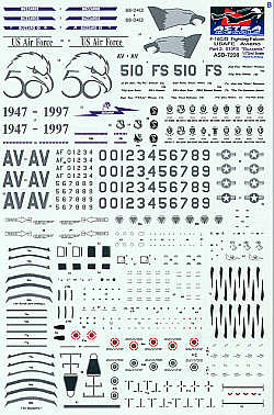 Astra Decals - 1/72 Lockheed-Martin F-16C Aviano. 88-413 510FS Buzzards Flagship, 89-491 510FS, 89-050 50th Anni 1997 scheme