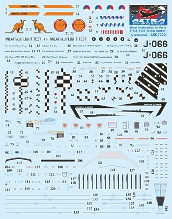 Foglio decalcomanie Astra Decals in scala 1/72 per il F-16B MLU della Royal Netherlands Air Force.