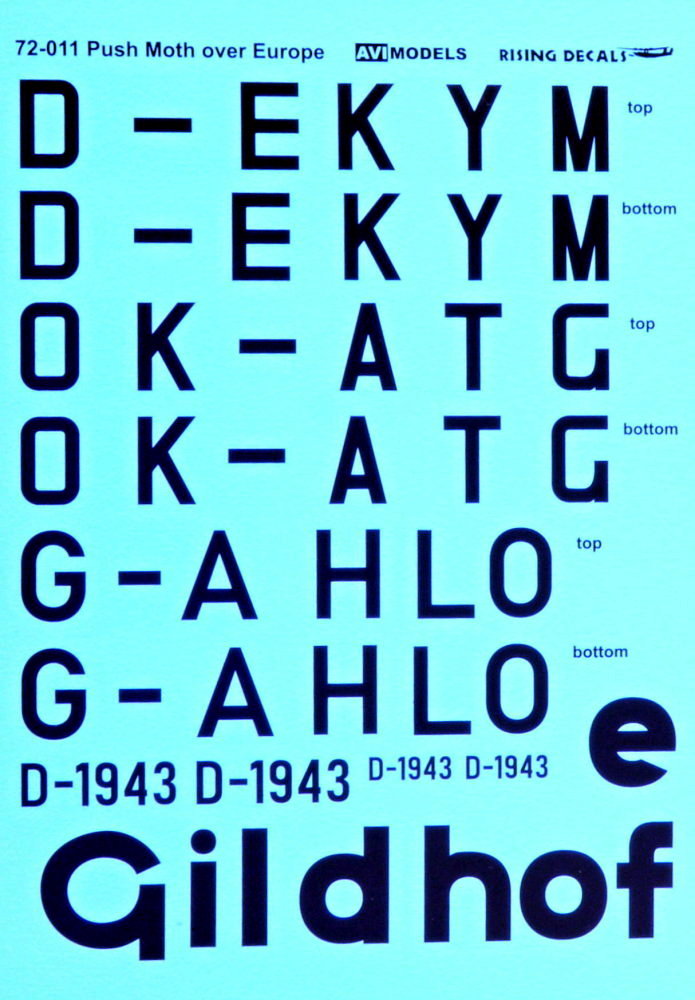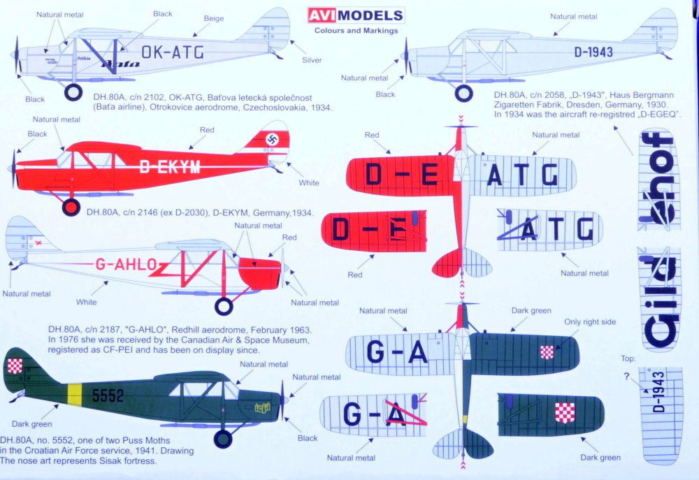 AVIPRINT DECALS - 1/72 Puss Moth over Europe (5x camo)