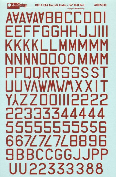 Foglio decalcomanie Aviaeology in scala 1/72 per codici RAF e FAA in colore rosso opaco 36.
