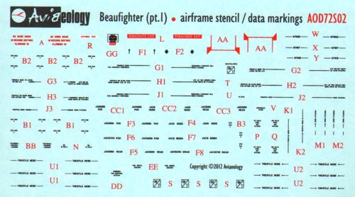 Aviaeology - 1/72 Bristol Beaufighter airframe stencil / data markings