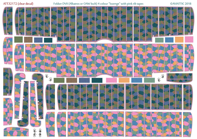 Aviattic - 1/32 Fokker D.VII (Albatros or OAW built) 4 colour lozenge with pink rib tapes (new wing sets to replace the discontinued sets)