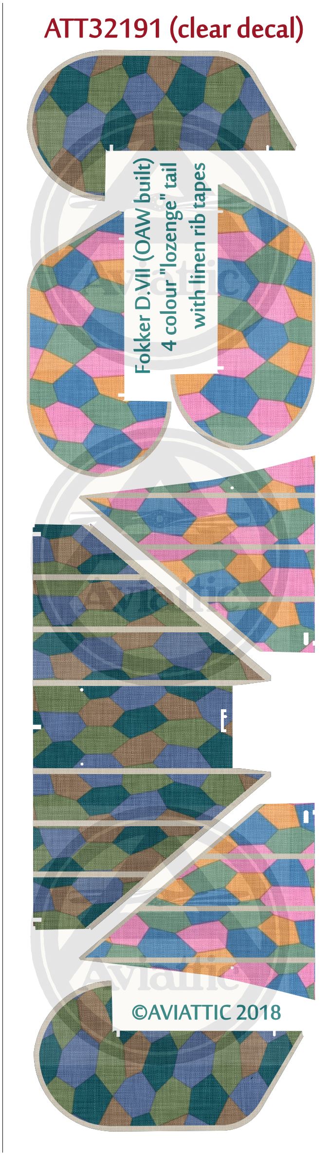 Aviattic - 1/32 Fokker D.VII (OAW built) 4 colour lozenge tail with linen rib tapes (new tail sets)
