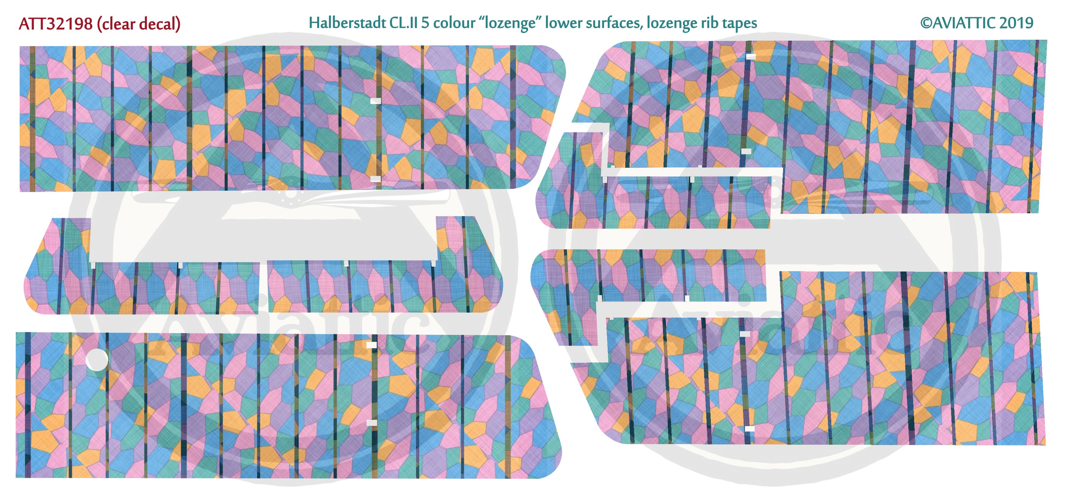 Aviattic - 1/32 Halberstadt CL.II 5 colour lozenge lower surfaces with lozenge rib tapes (Clear decal paper)