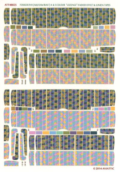 Aviattic - 1/48 Fokker D.VII (alb/oaw built) 4 & 5 colour "lozenge" faded effect & linen tapes (x2)