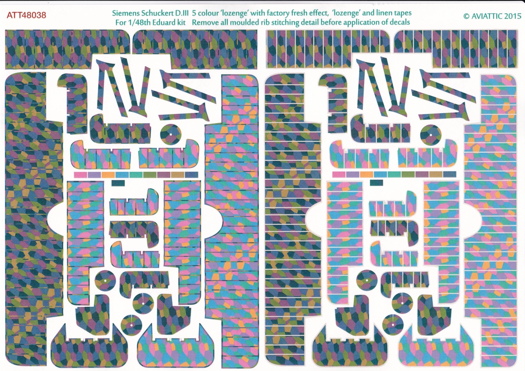 Aviattic - 1/48 Siemens-Schuckert D.III 5 colour Lozenge factory fresh with lozenge and linen rib tapes for Eduard kit