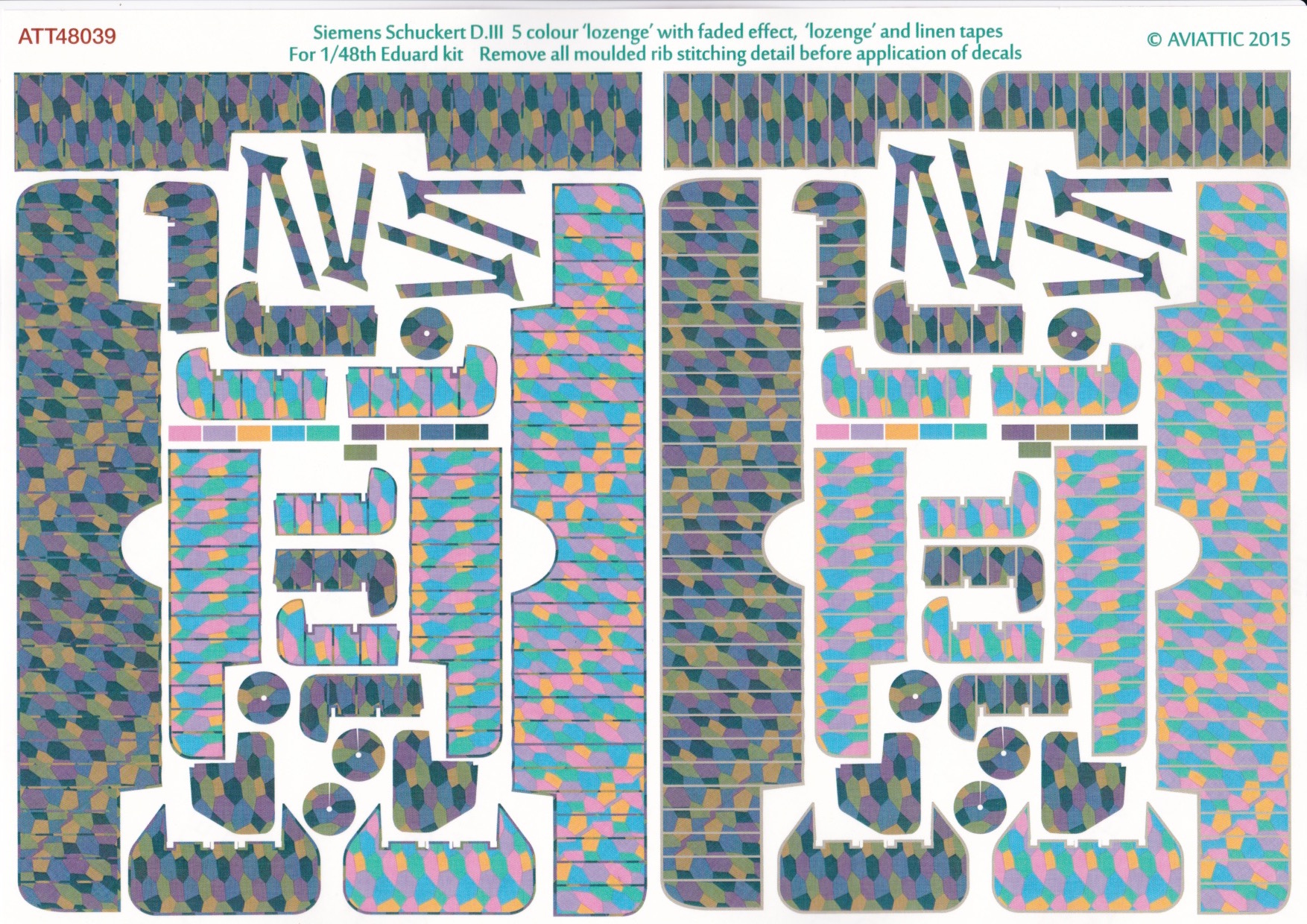 Aviattic - 1/48 Siemens-Schuckert D.III 5 colour Lozenge faded with lozenge and linen rib tapes for Eduard kit