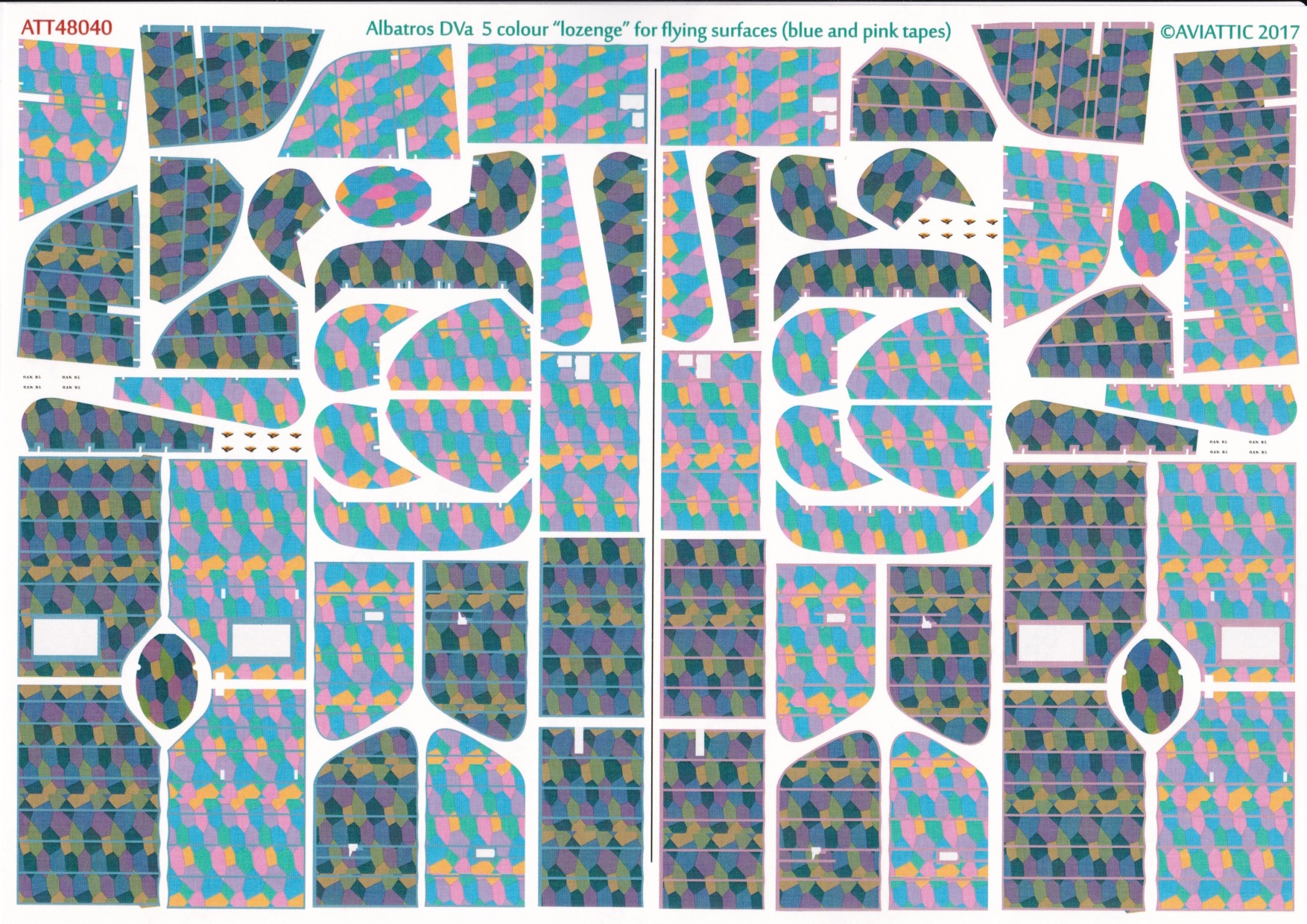 Aviattic - 1/48 Albatros D.Va 5 colour lozenge for flying surfaces (blue and pink tapes)