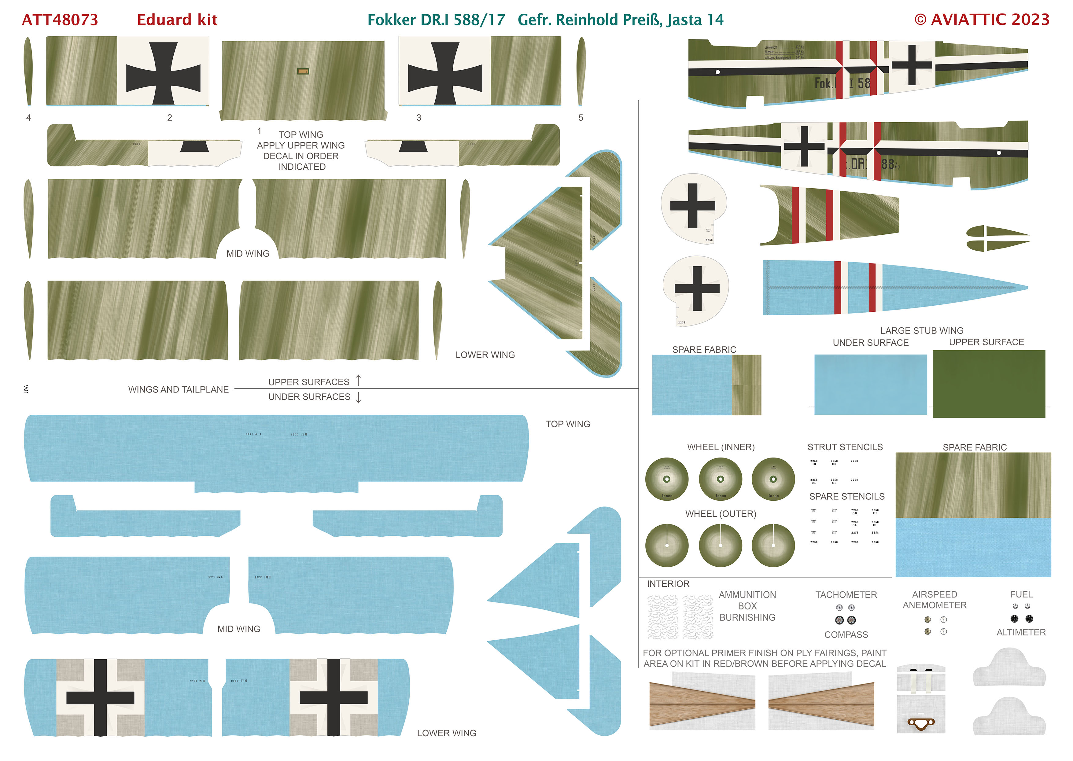 Aviattic - 1/48 Fokker Dr.I Triplane 588/17 Gefreiter Reinhold Preis, Jasta 14