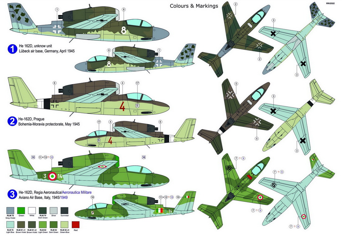 AZ MODEL - 1/72 Heinkel He 162D Salamander (3x camouflages)