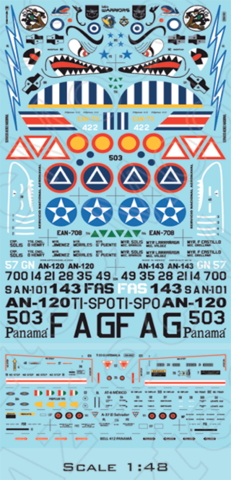 Foglio Aztec in scala 1/48 per velivoli dell'aviazione latinoamericana.