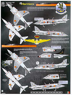 Foglio decalcomanie Aztec 1/72 per Harrier RAF e McDonnell-Douglas AV-8A della Marina spagnola.