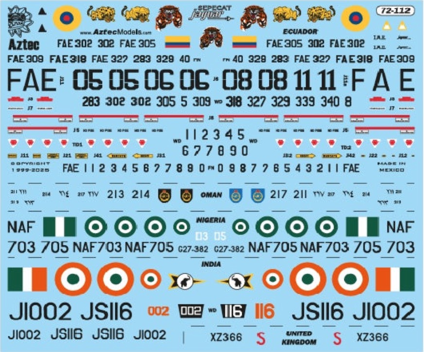 Aztec - 1/72 Sepecat Jaguar. Ecuador 3, Oman 3, Nigeria 2, India 2, United Kingdom 1