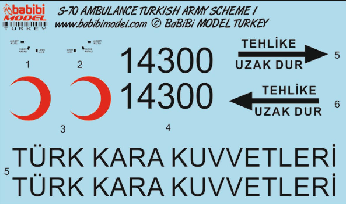 Babibi Models - 1/72 Sikorsky S-70 Blackhawk Ambulance Turkish Army Decal Set