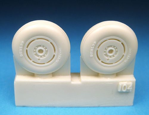 Barracuda Studios - 1/32 Supermarine Spitfire 3 Slot Wheels - Circumferential (for all kits) This set contains a pair of super detailed resin 3 slot wheels with ribbed tires as fitted to many postwar variants, including the Spitfire Mk.XIV, Mk.XVI, Mk.XVIII, Mk.XIX, Mk.22/24, as well as some Seafire 45 and 46 and Spiteful/Seafangs. These wheels are fitted to many postwar foreign Spits as well as many warbirds of all marks. Made from careful measurements and photos taken of full size wheels. Can be fitted to many Spitfire kits. (designed to be used with Revell, Tamiya and Trumpeter kits)