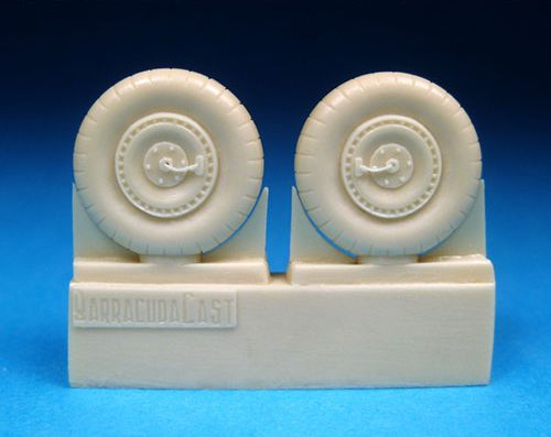 Barracuda Studios - 1/48 WWII Russian Fighter Mainwheels. This set contains a pair of highly detailed, accurate resin mainwheels as fitted to the Mikoyan MiG-3, Yakovlev Yak-7, Yak-9, Lavochkin LaGG-3, La-5, La-5FN, La-7. Fits any 48th kit. Master patterns by Mike Good.