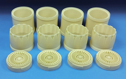 Barracuda Studios - 1/48 Rockwell B-1B Bomber Exhausts with Turkey Feathers (designed to be used with Monogram and Revell kits) This set consists of four complete, superdetailed early exhaust assemblies. The first B-1Bs were fitted with turkey feathers covering the exhausts. Early in the program, it was found that vibration problems were splitting and breaking them, so they were removed from all subsequent Bones. This set contains rear engine faces with flame holders, exhaust tubes and covered exhaust nozzles, and allows you to build a super detailed early B-1B. Quick and easy to install with simple, clear instructions. For the Revell B-1B kit.