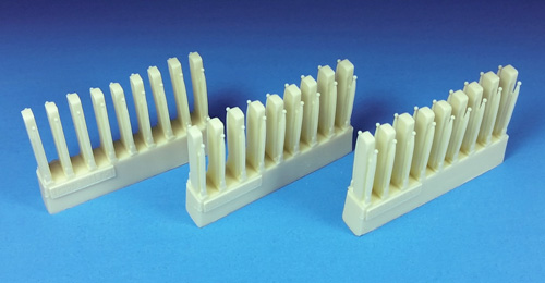 Barracuda Studios - 1/48 Rockwell B-1B Bomber Exhausts Late style no turkey feathers (designed to be used with Monogram and Revell kits) This set consists of four complete, superdetailed late exhaust assemblies. The first B-1Bs were fitted with turkey feathers covering the exhausts. Early in the program, it was found that vibration problems were splitting and breaking them, so they were removed from all subsequent Bones. This set contains late style uncovered rear engine faces with flame holders, exhaust tubes, exposed exhaust nozzles and 54 separate radius rods that allows you to build a super detailed late B-1B. Surprisingly easy assembly that yields a very detailed model. Complete with instructions. For the Revell B-1B kit.