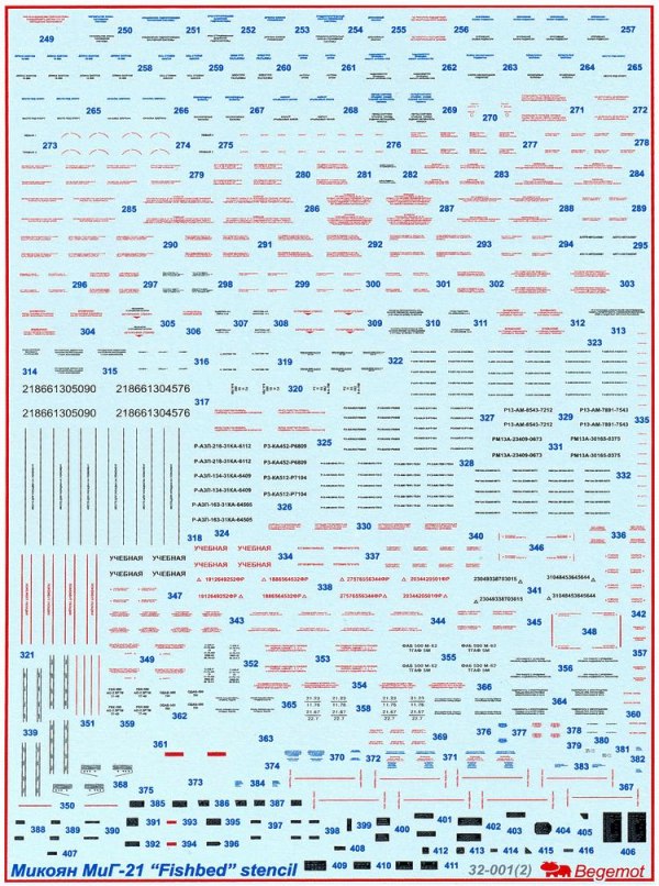 Begemot - 1/32 Mikoyan MiG-21 Stencil Data