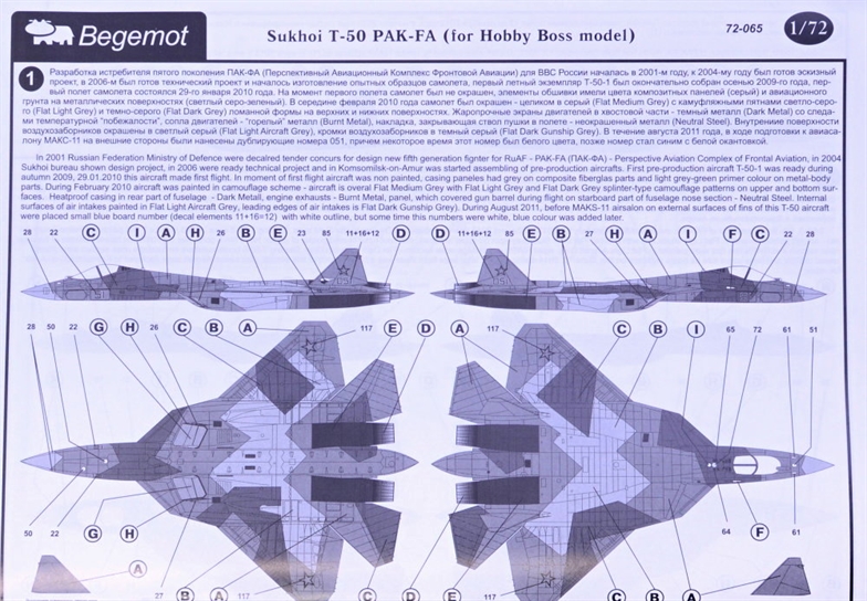 BEGEMOT - 1/72 Sukhoi T-50 PAK-FA (decal for Hobby Boss kit)