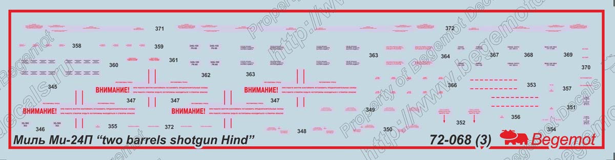 Begemot - 1/72 Mil Mi-24P Decal with opportunity make 51 marking variations Mi-24P helicopter. Full stencil data for one helicopter and variouse external armament.